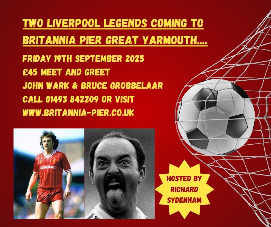 Liverpool dominated English football in the 1980s winning the League Championship six times in the decade, as well as two FA Cups, two European Cups, four League Cups, five Charity Shields and one European Super Cup. Two players who were integral to many of those successes were goalkeeper Bruce Grobbelaar and goal-scoring midfielder John Wark. They will be in Great Yarmouth to meet with supporters and regale them with funny stories of being part of that great team and what it took to win so much silverware.