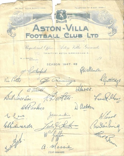 Original Aston Villa Squad Autograph Sheet, 1947-48 (unique item)