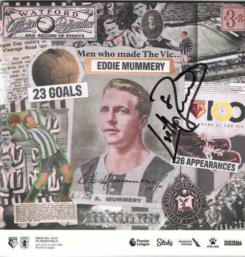 Watford match programme vs Aston Villa (SIGNED by club legend Luther Blissett)
